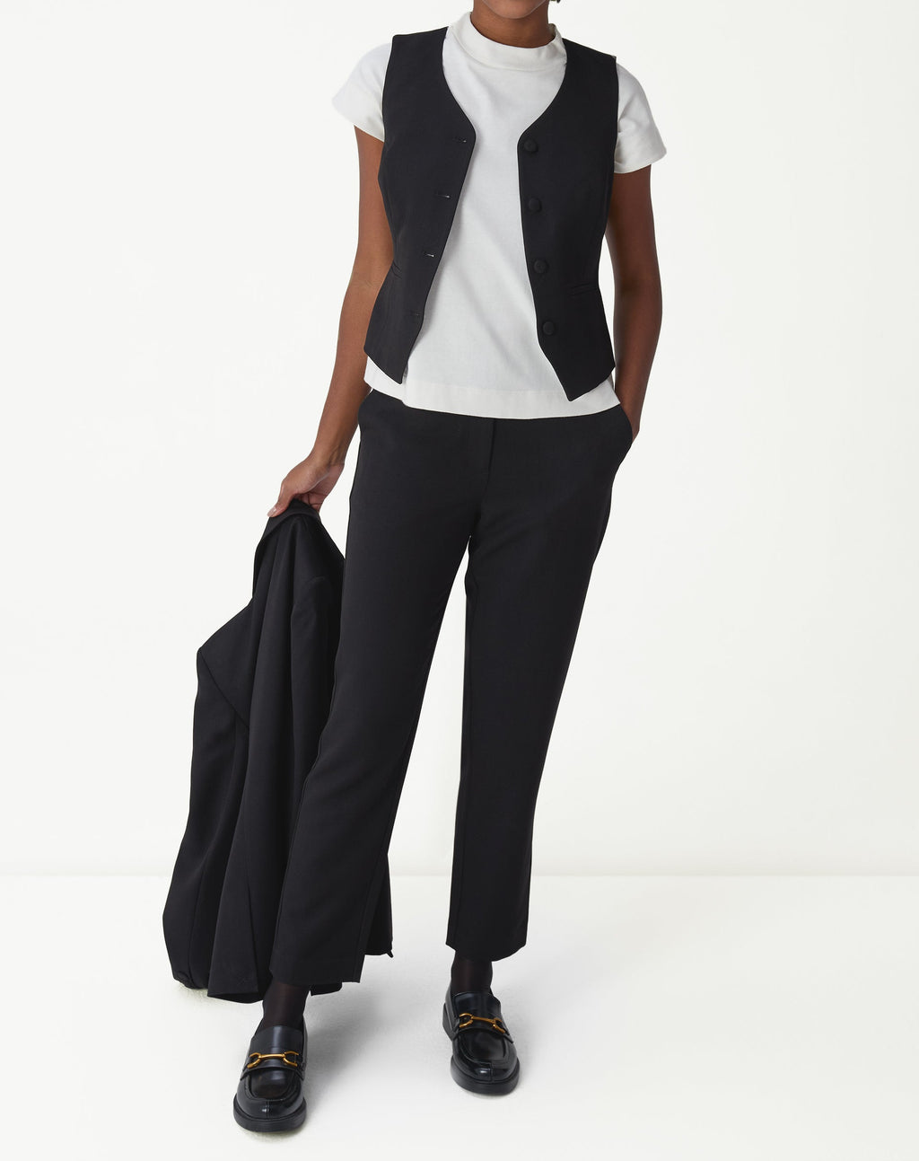 Destaque-se com o Colete Slim com Botão Forrado Alfaiataria, uma peça versátil e atemporal. O design midi, sem alça e em tecido plano de poliéster, viscose e elastano, traz elegância e sofisticação para qualquer ocasião, do trabalho ao happy hour.