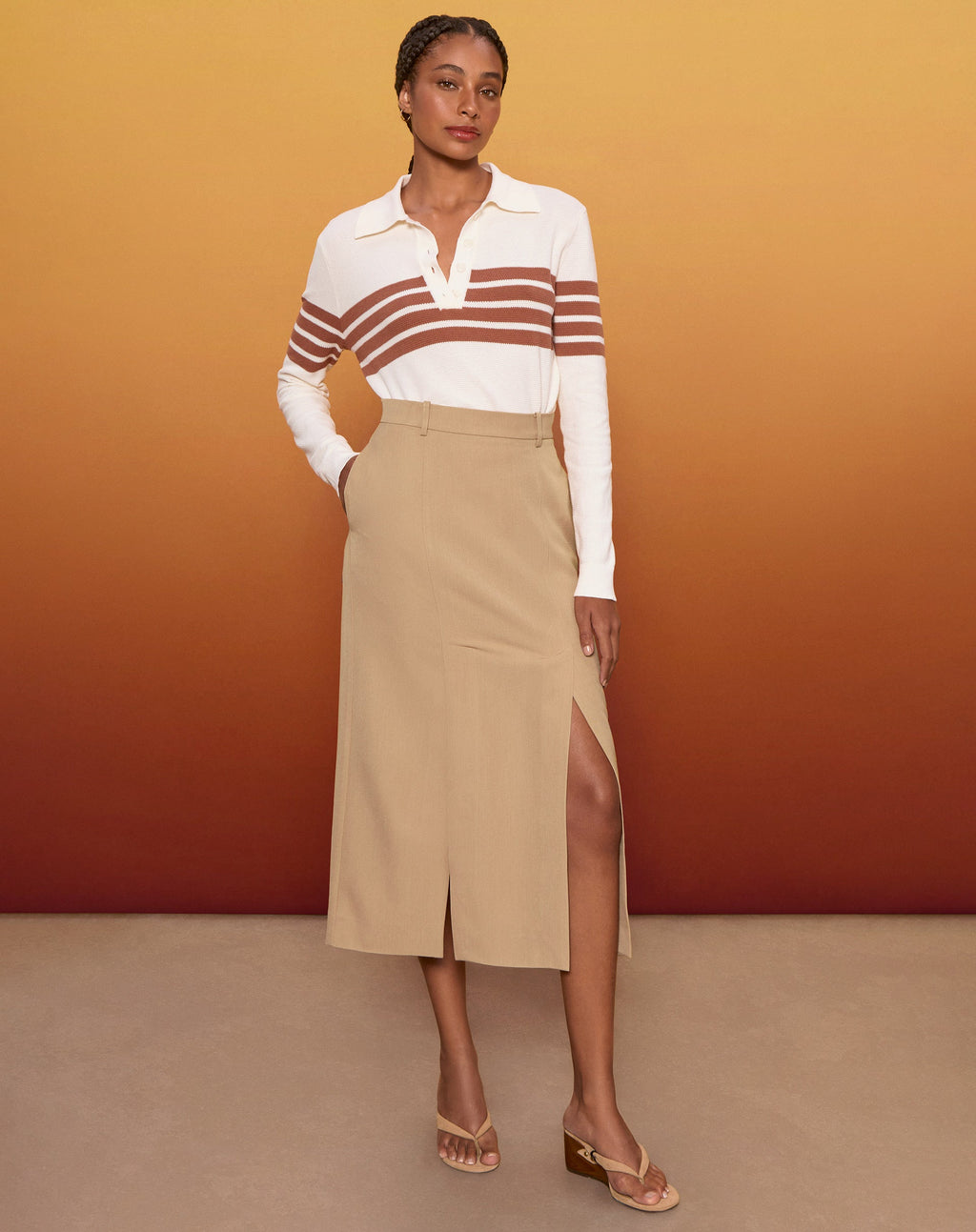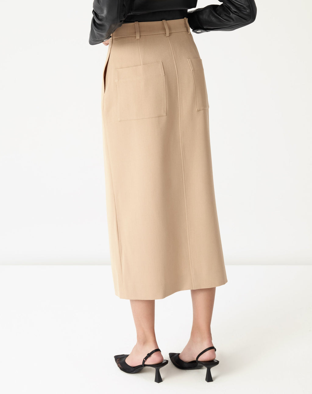 SAIA MIDI COM FENDAS ALFAIATARIA - BEGE