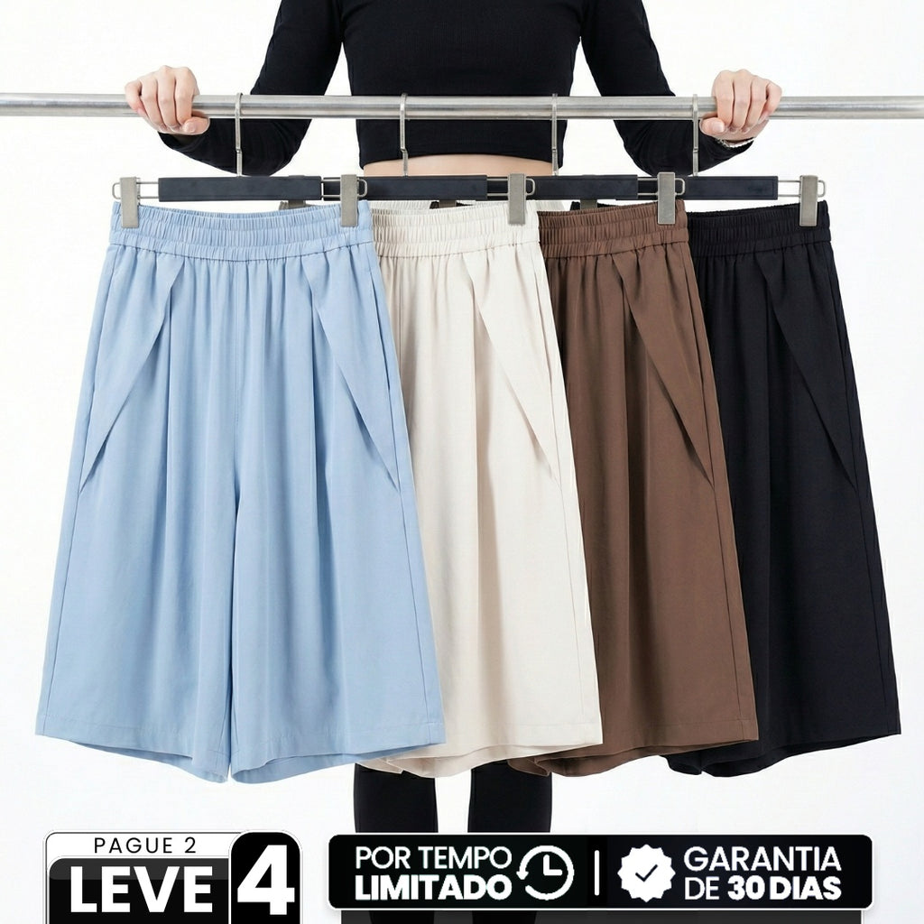 [Leve 4, Pague 2] Shorts Ayla Feminino em Poliéster e Elastano de Cintura Alta com Pregas Frontais e Cós Elástico