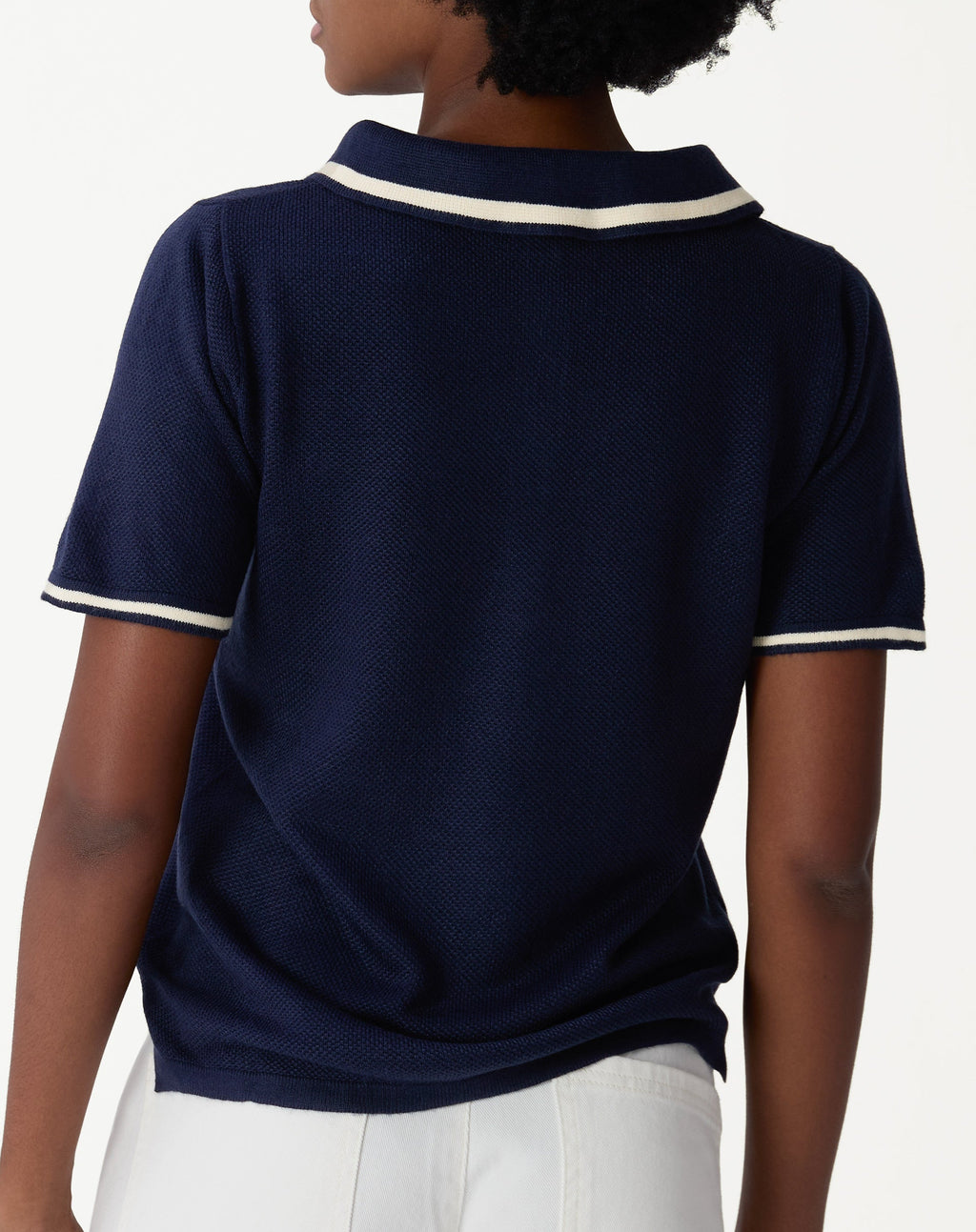 Descubra a BLUSA POLO TRICOT, a peça básica que vai elevar seu look casual! Polo de tricot confeccionada em acrílico de toque macio e leve, garantindo conforto e um caimento estruturado., possui comprimento midi, detalhes em gola e manga curta. Seu design minimalista e versátil é perfeito para diversas ocasiões.