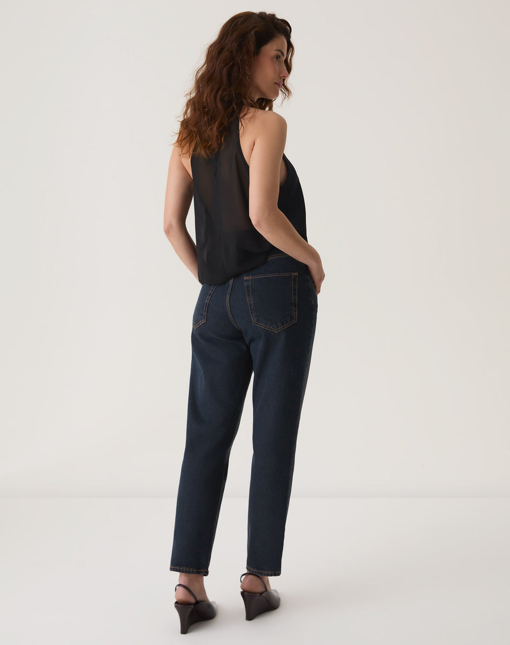 Com design vintage e cintura média, a Calça Mom Jeans é a peça must-have para um visual descolado e atemporal. Feita em jeans de algodão, seu comprimento midi e estilo mom garantem um look elevado e versátil para diversas ocasiões.