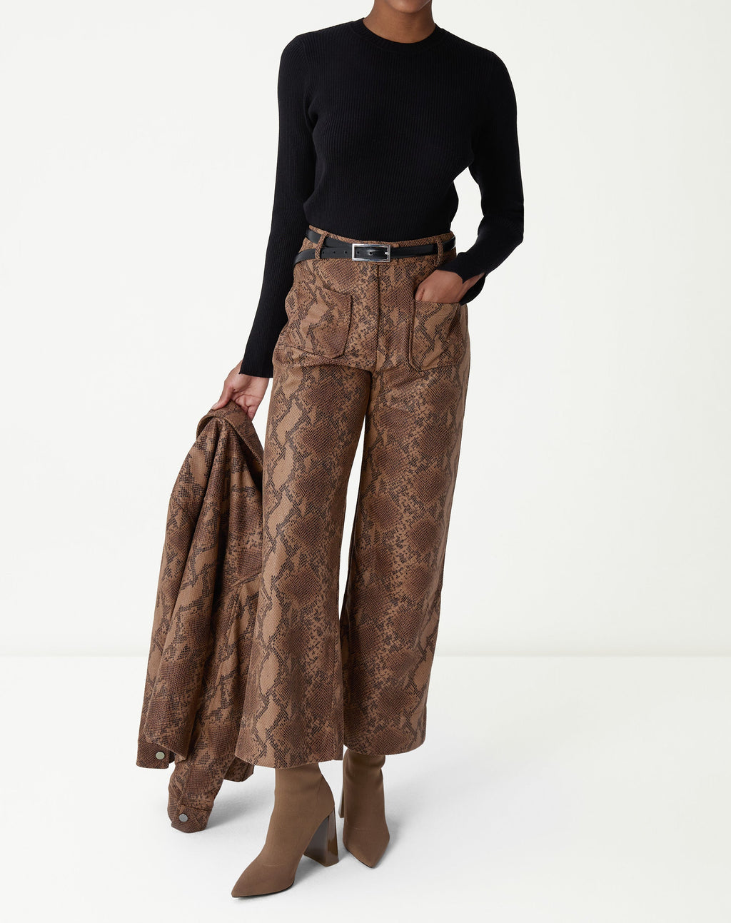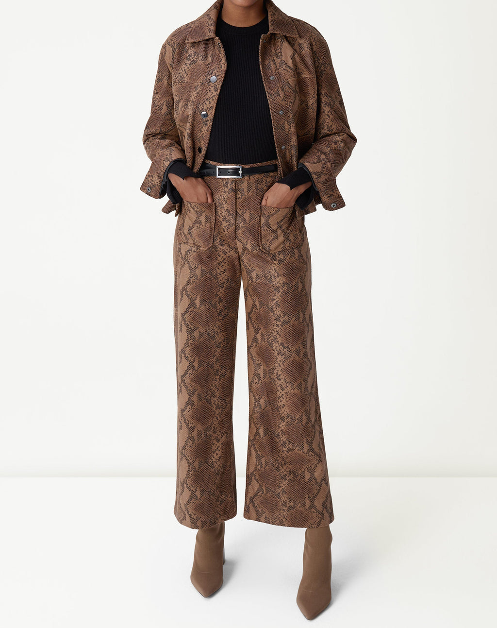 Desfrute do luxo e da elegância com a Calça Reta Cobra PU. O design minimalista se destaca pela estampa animal print e cós alto, garantindo um look sofisticado e atemporal. Perfeita para um jantar sofisticado ou um evento especial.