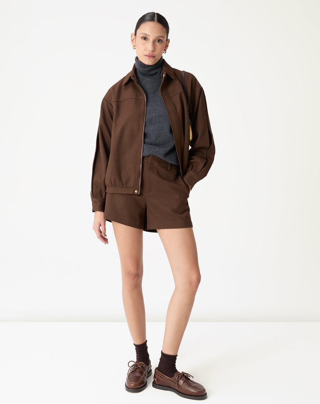 Modelo tem 1.76m de altura e veste o tamanho P / 38