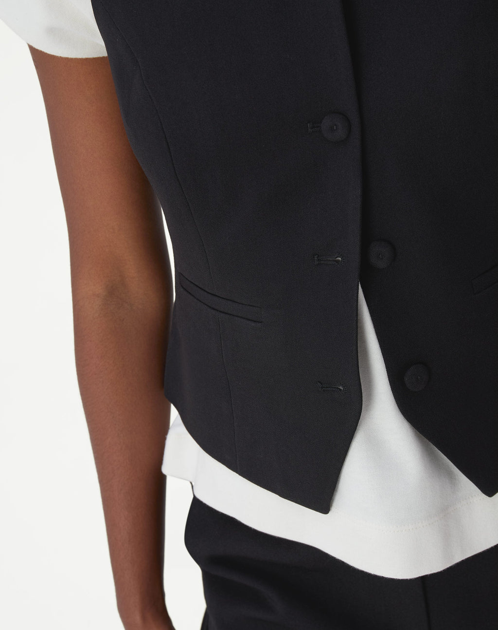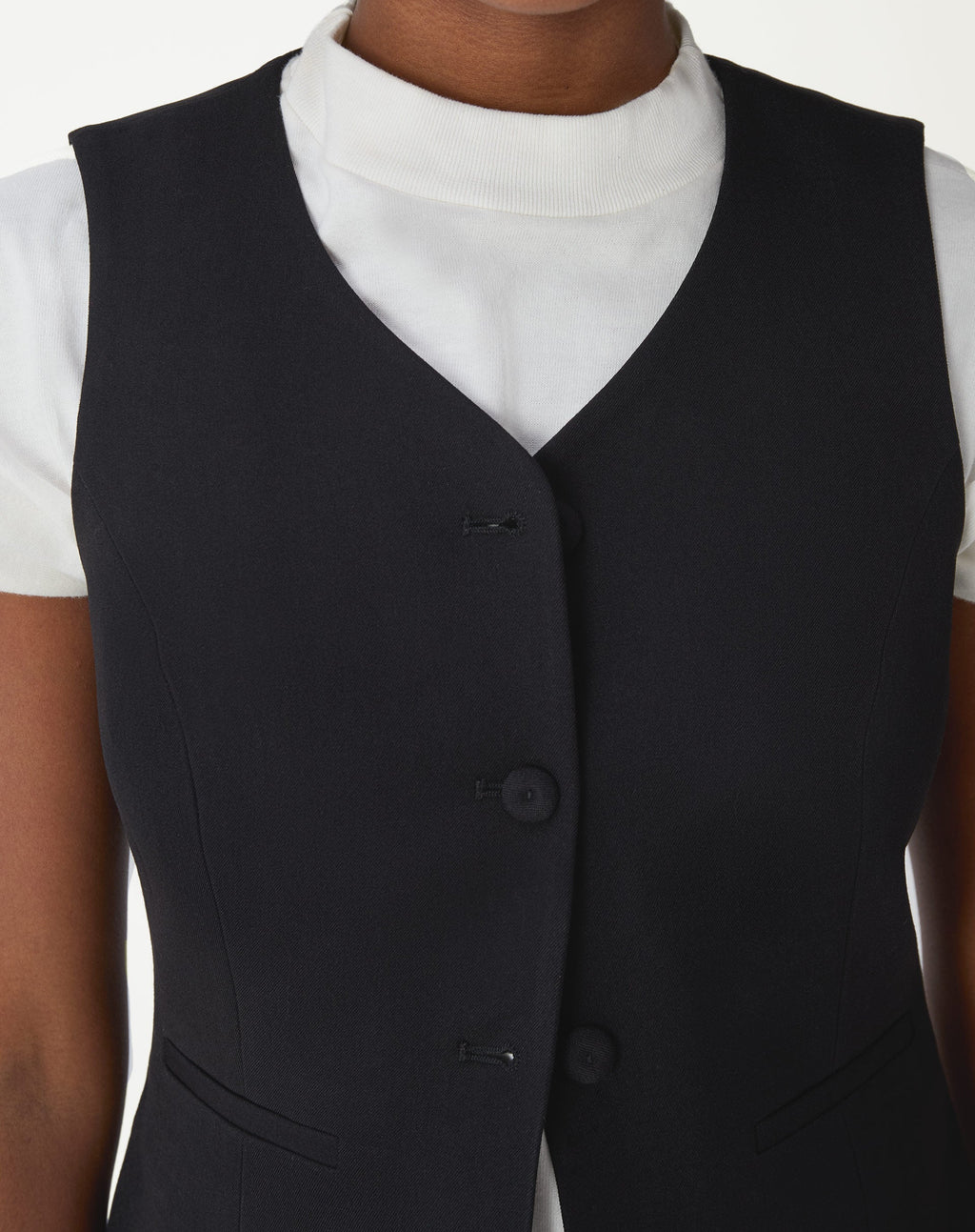 Destaque-se com o Colete Slim com Botão Forrado Alfaiataria, uma peça versátil e atemporal. O design midi, sem alça e em tecido plano de poliéster, viscose e elastano, traz elegância e sofisticação para qualquer ocasião, do trabalho ao happy hour.