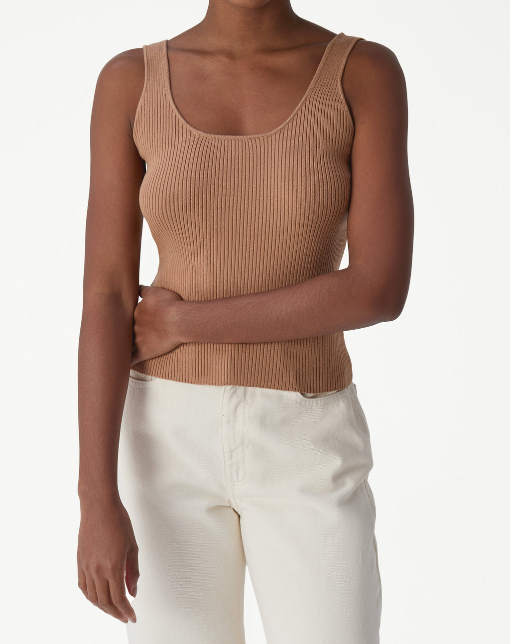 A Regata Básica Tricot Decote U é a peça curinga que seu closet precisa! Com comprimento midi, tecido de tricot e detalhe de alça, essa regata minimalista é ideal para um look elevado e versátil.