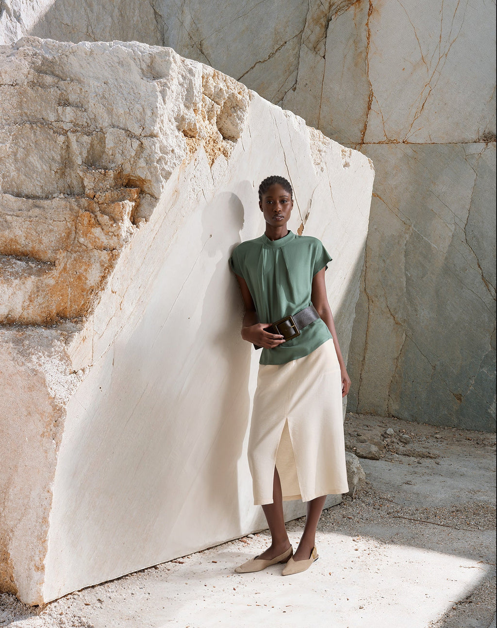 Saia midi com fenda frontal em alfaiataria, perfeita para um look elegante e moderno. Versátil, pode ser usada do trabalho ao happy hour, garantindo sofisticação e estilo.