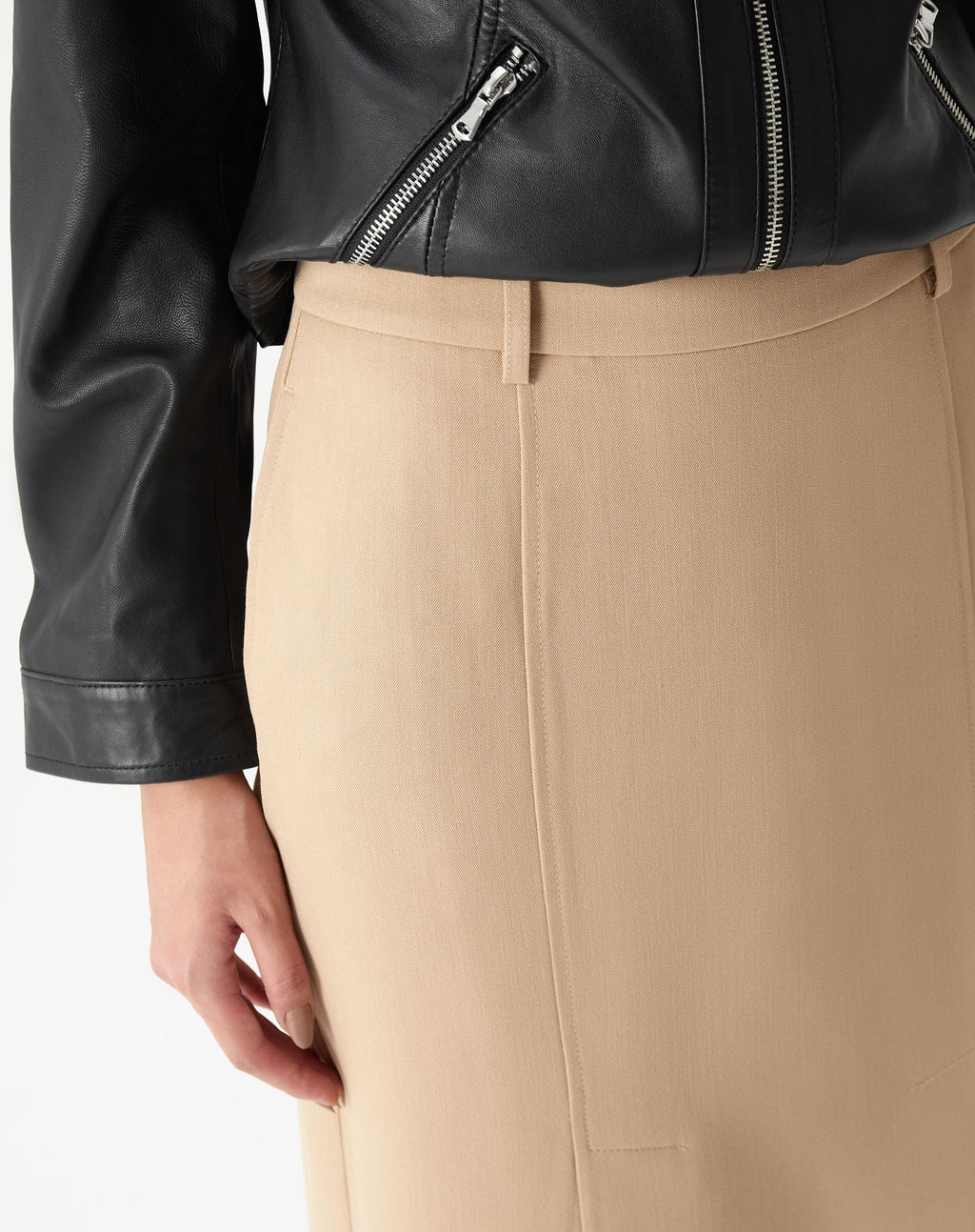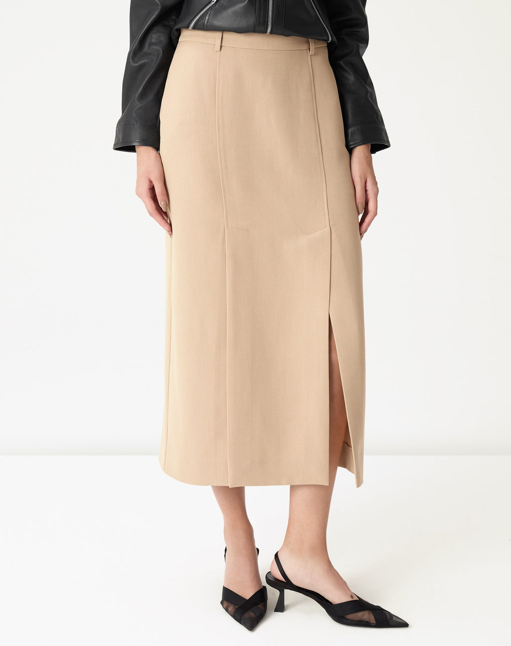SAIA MIDI COM FENDAS ALFAIATARIA - BEGE